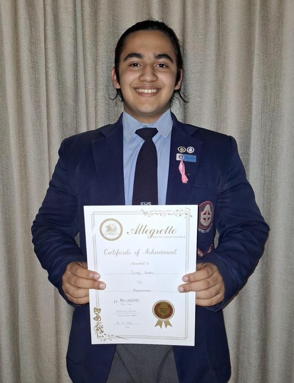 Congratulations to Cienna Fisher and Suraj Suku on their excellent results at the National Afrikaans Allegretto Eisteddfod 2024! Both students qualified for the National Gala evening on November 2nd, 2024.